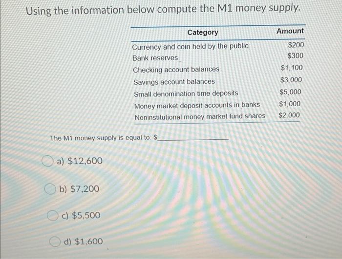 Solved Using The Information Below Compute The M1 Money Chegg Com